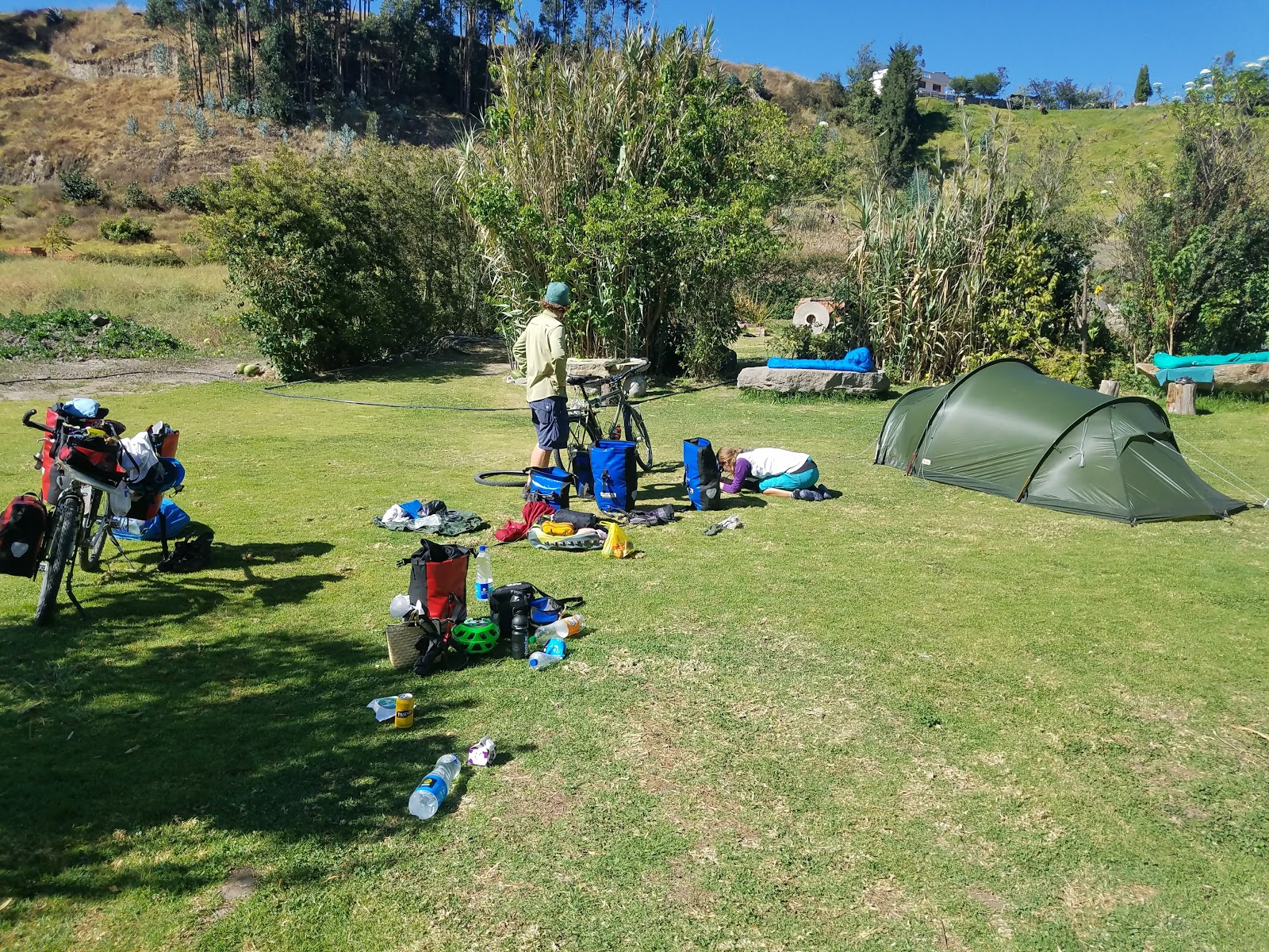 Being about 120km from Ibarra to Quito, we decided to break the journey into 2 cycling days. We'd been given a recommendation for a camping site near Cayambe where it was only 3USD to camp including shower and WiFi. The site was run by Valentin and his family and we were warmly welcomed by Valentin's son who also invited us to visit his sisters cafe which was just near the